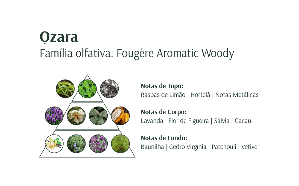 Uma fragrância intensa e agênero, Ozara foi vencedora do 31º Prêmio Atualidade Cosmética (2023) na categoria "Perfumaria Latino-Americana Feminina". Inspirada nos elementos da natureza, a Deo Colônia Ozara possui uma essência amadeirada aromática que transmite vibração, energia e calor.