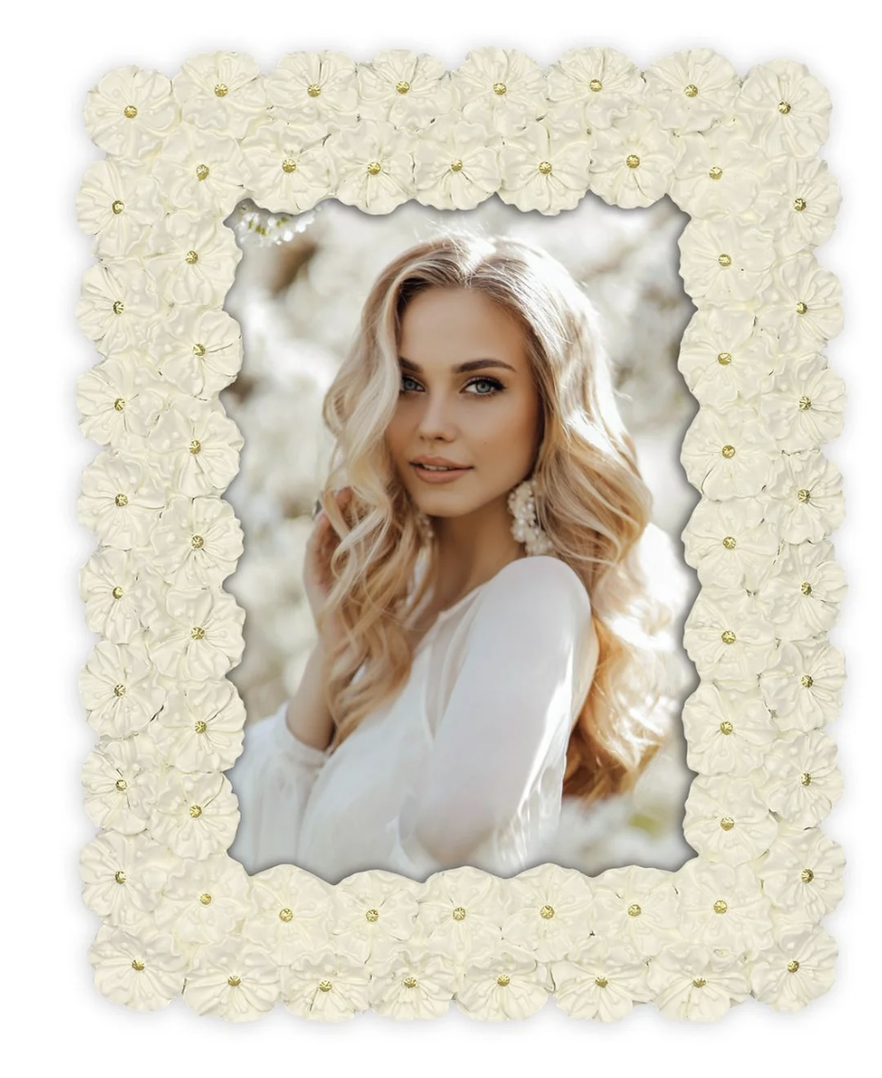 moldura para retrato ZEP Plaisir 20x15 cm na cor creme é uma elegante moldura de resina que impressiona com seu design floral. É ideal para exibir memórias especiais.