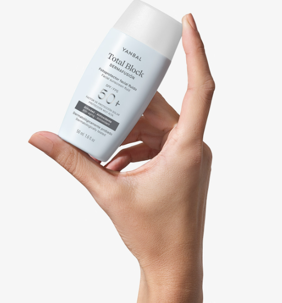 Total Block pesenta su nueva línea de protección 360 para la piel: Total Block Dermafusión. Un fotoprotector facial fluido que combina protección contra los rayos dañinos del sol con una triple acción de tratamiento facial: antiedad, antioxidante e hidratante. Además, su textura fluida ultraligera se integra perfectamente con los productos de una rutina facial, perfecto para usarlo todos los días.