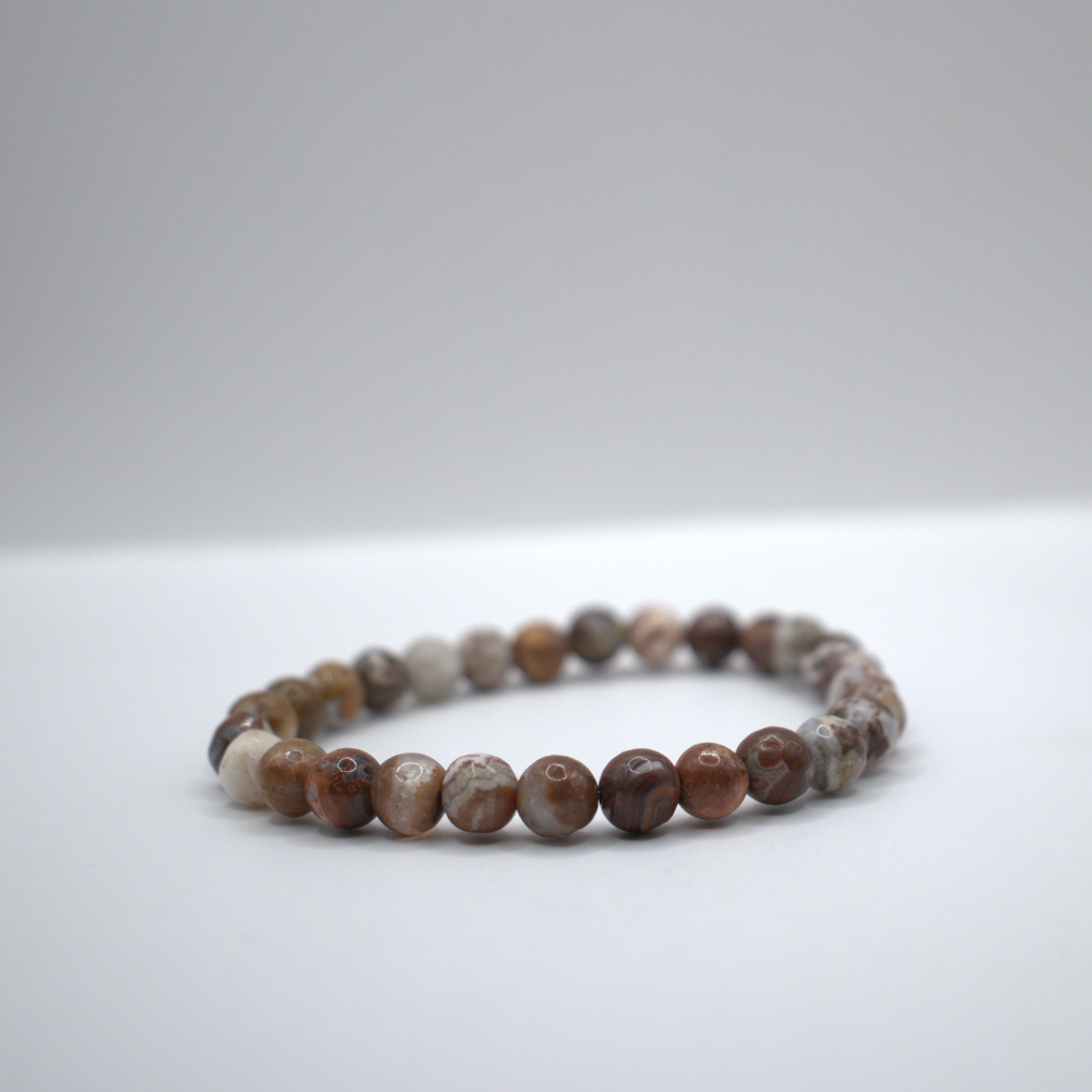 Abrace a autenticidade vibrante da Ágata Louca Bandada com esta pulseira de esferas naturais, nas versões de 6 mm e 8 mm. Cada conta revela padrões únicos e cores intensas, variando entre tons de vermelho, cinza, branco, castanho e bege, formando verdadeiras obras de arte mineral. O nome “louca” remete ao aspeto visual caótico das bandas que se entrelaçam de forma imprevisível, tornando cada peça absolutamente irrepetível.