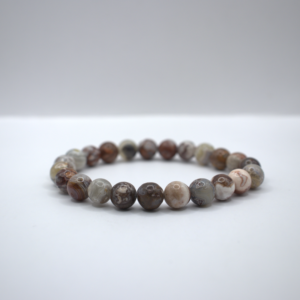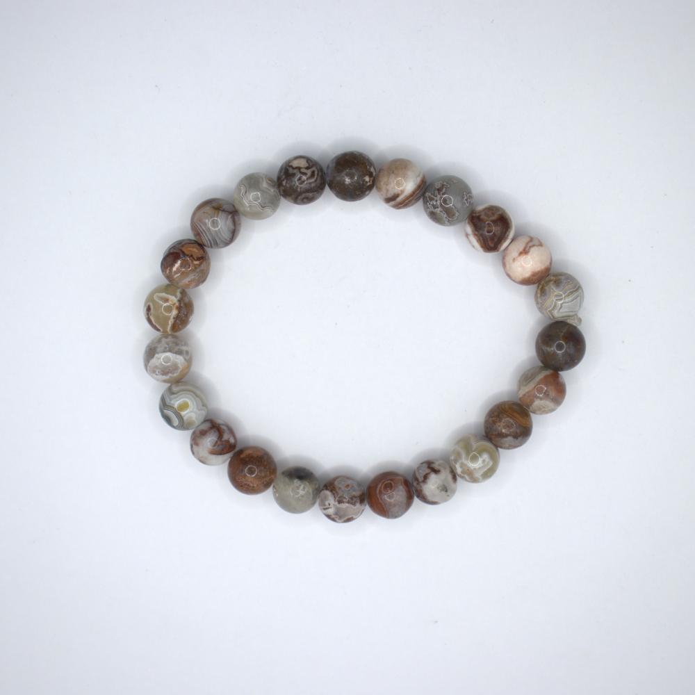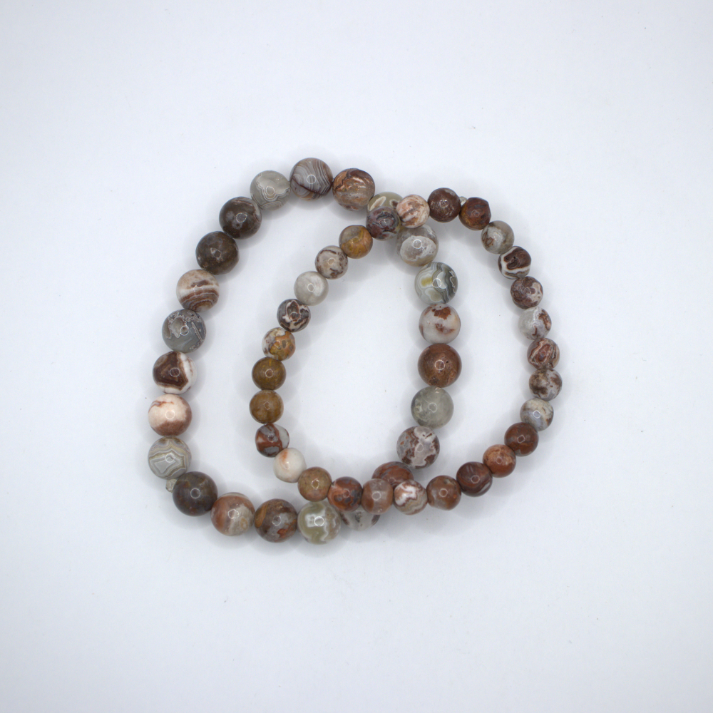 Pulseira de Esferas Naturais de Ágata Louca Bandada.