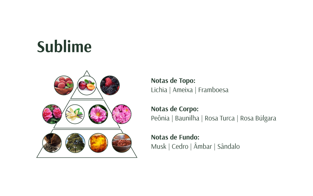 O perfume Sublime é inigualável e encaixa-se, perfeitamente, com personalidades femininas marcantes e sofisticadas. A sua fragrância é encantadora, aliando-se aos desejos de mulheres que buscam por outro patamar na vida.