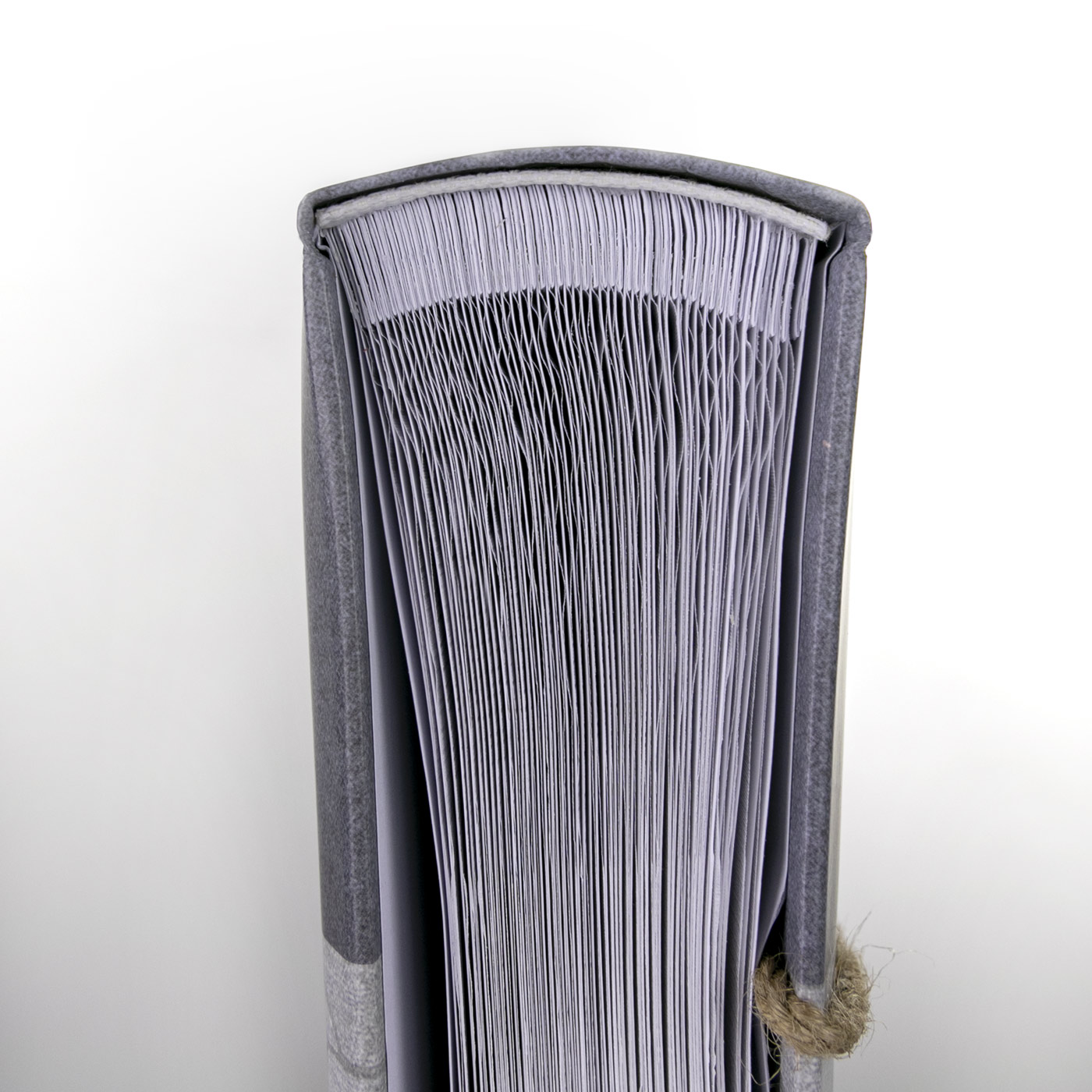 Álbum de fotos 24×24 cm, 40 páginas brancas com papel vegetal, capa de papel, fita de juta, design elegante em azul.
