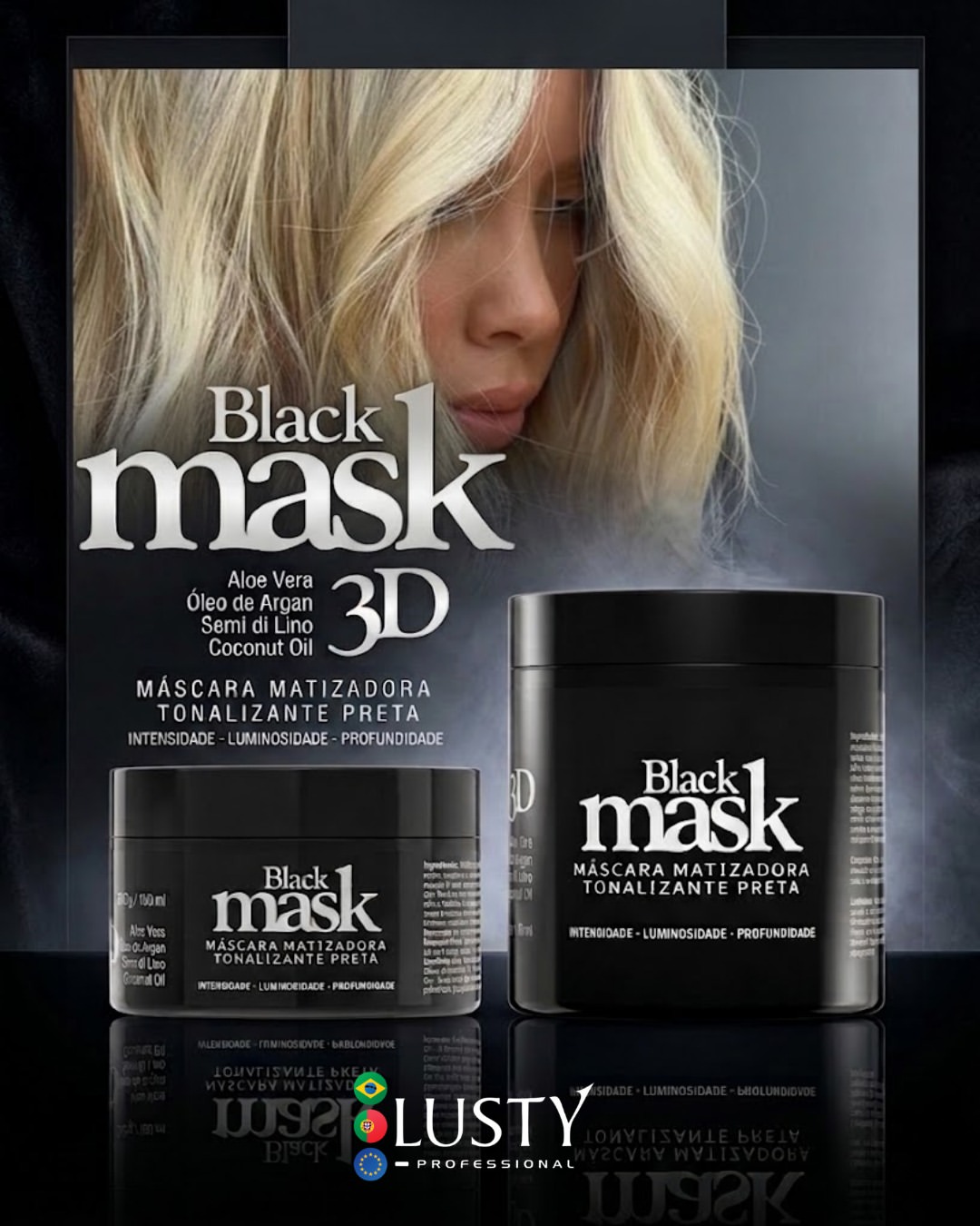 A Black Mask 3D – Máscara Tonalizante Matizadora Black da Lusty foi especialmente desenvolvida para matizar o amarelado dos fios loiros, grisalhos e brancos, causados pela ação do tempo, nicotina, poluição, raios UV e coloração.