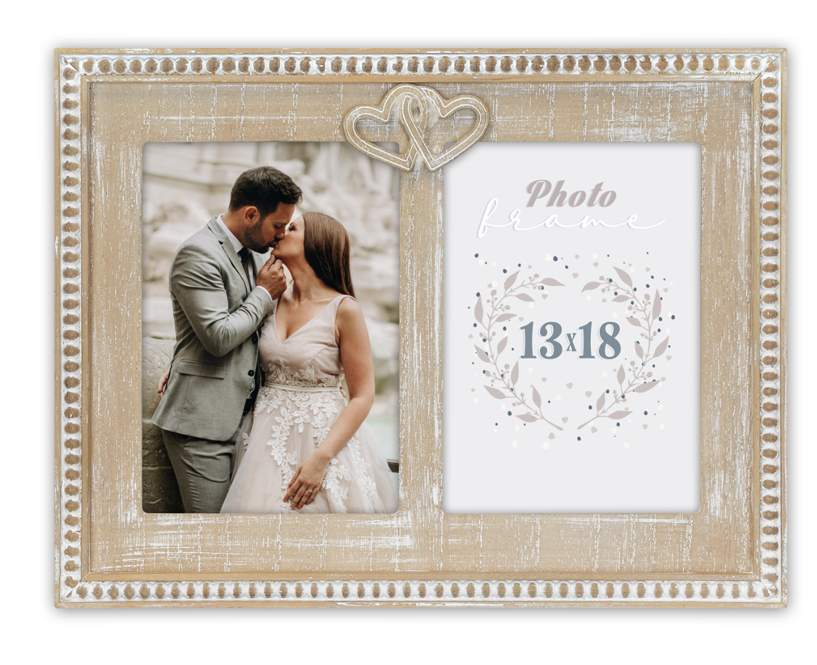 Moldura dupla de madeira ZEP Selene, espaço para 2 fotos 13×18 cm, estilo vintage, madeira de alta qualidade, decoração em forma de coração, para pendurar ou apoiar na parede, ideal para fotos de casamento e família.
