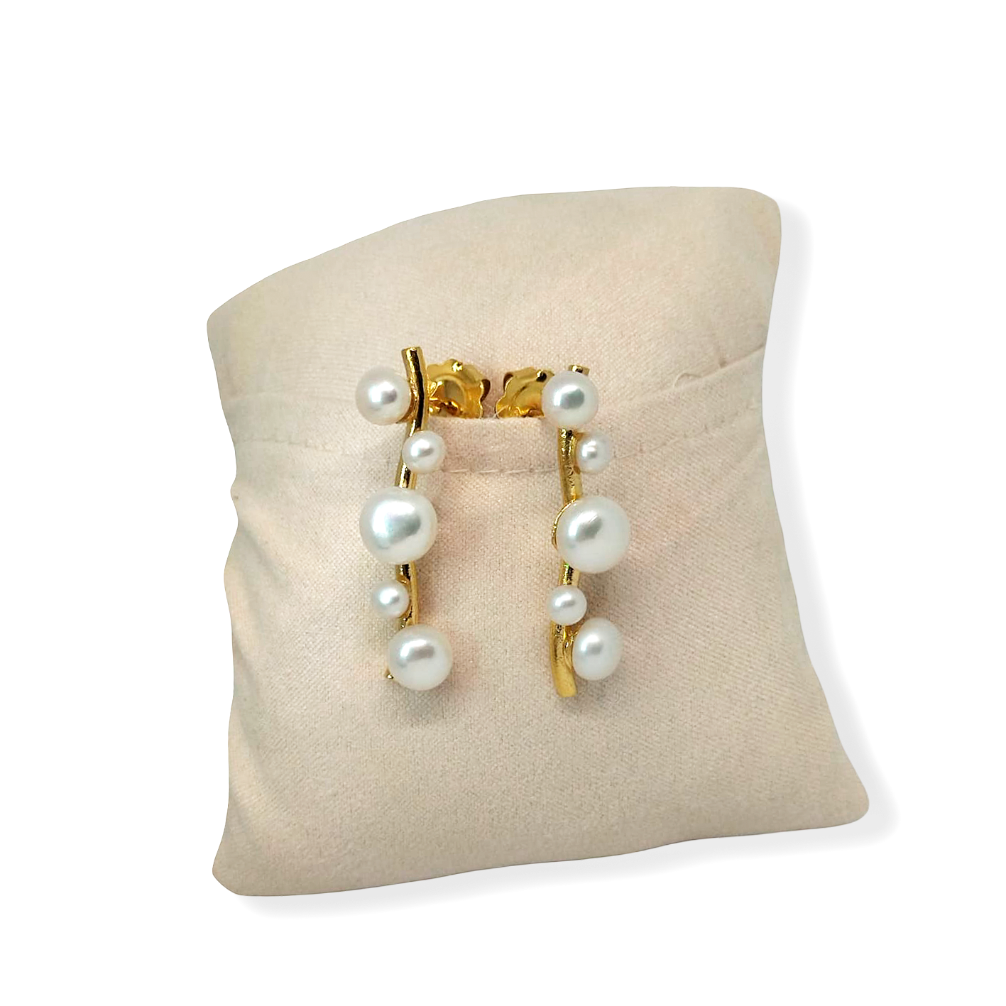Ourivesaria Ágata Brincos de prata dourada 925 com pérolas brancas.