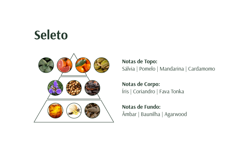O perfume Seleto é uma fragrância amadeirada aromática, ideal para homens de estilo arrojado e discreto.
