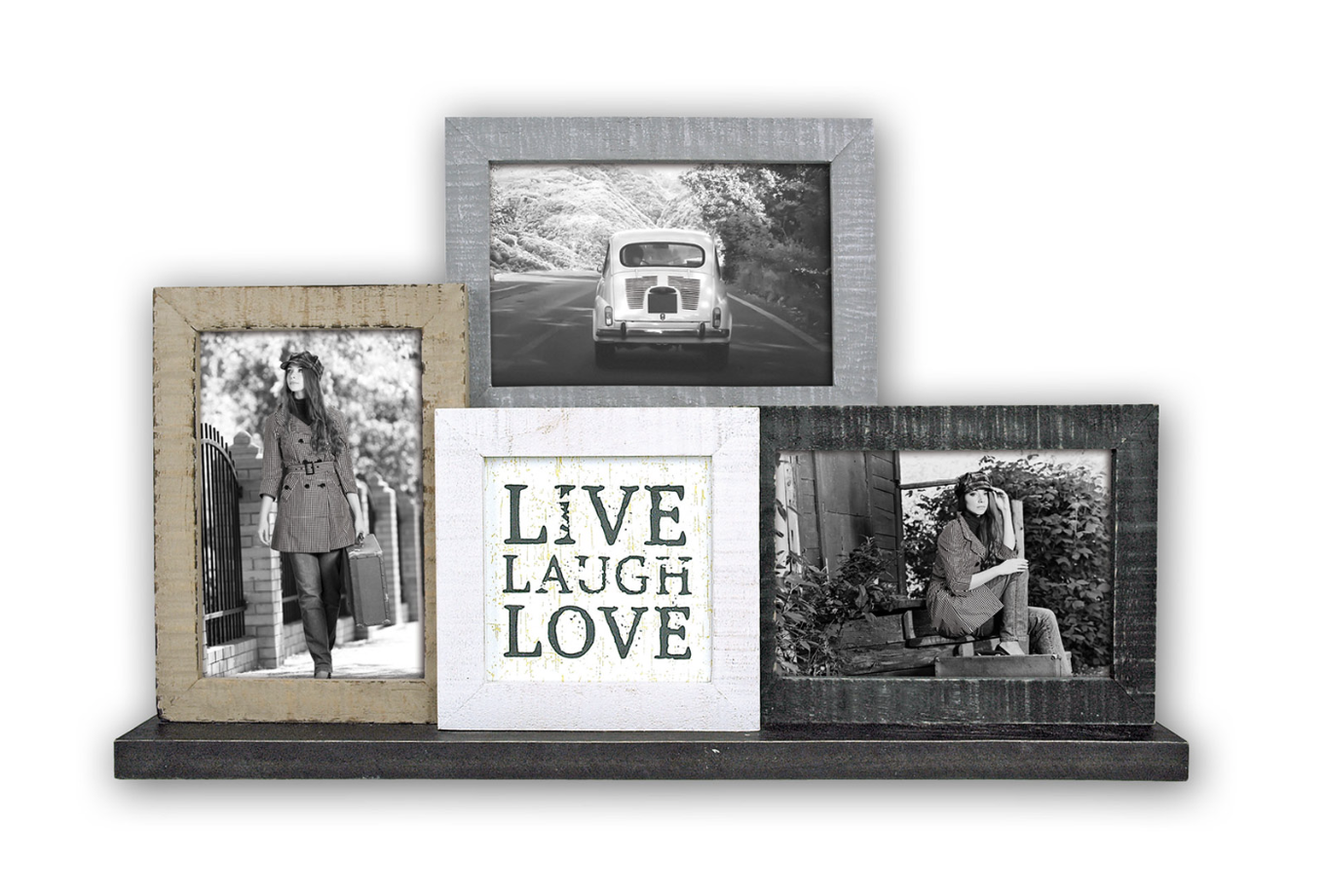 Porta-retratos ZEP Jerome, 42×27 cm, madeira com visual vintage, espaço para 3 fotos de 10×15 cm e 1 foto de 10×10 cm, base estável, decorativo para sala de estar, quarto e escritório.