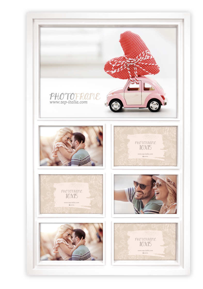 Moldura de poliestireno branco, para parede, para 6 fotos de 10×15 cm e 1 foto de 20×30 cm, tamanho 36×58 cm.