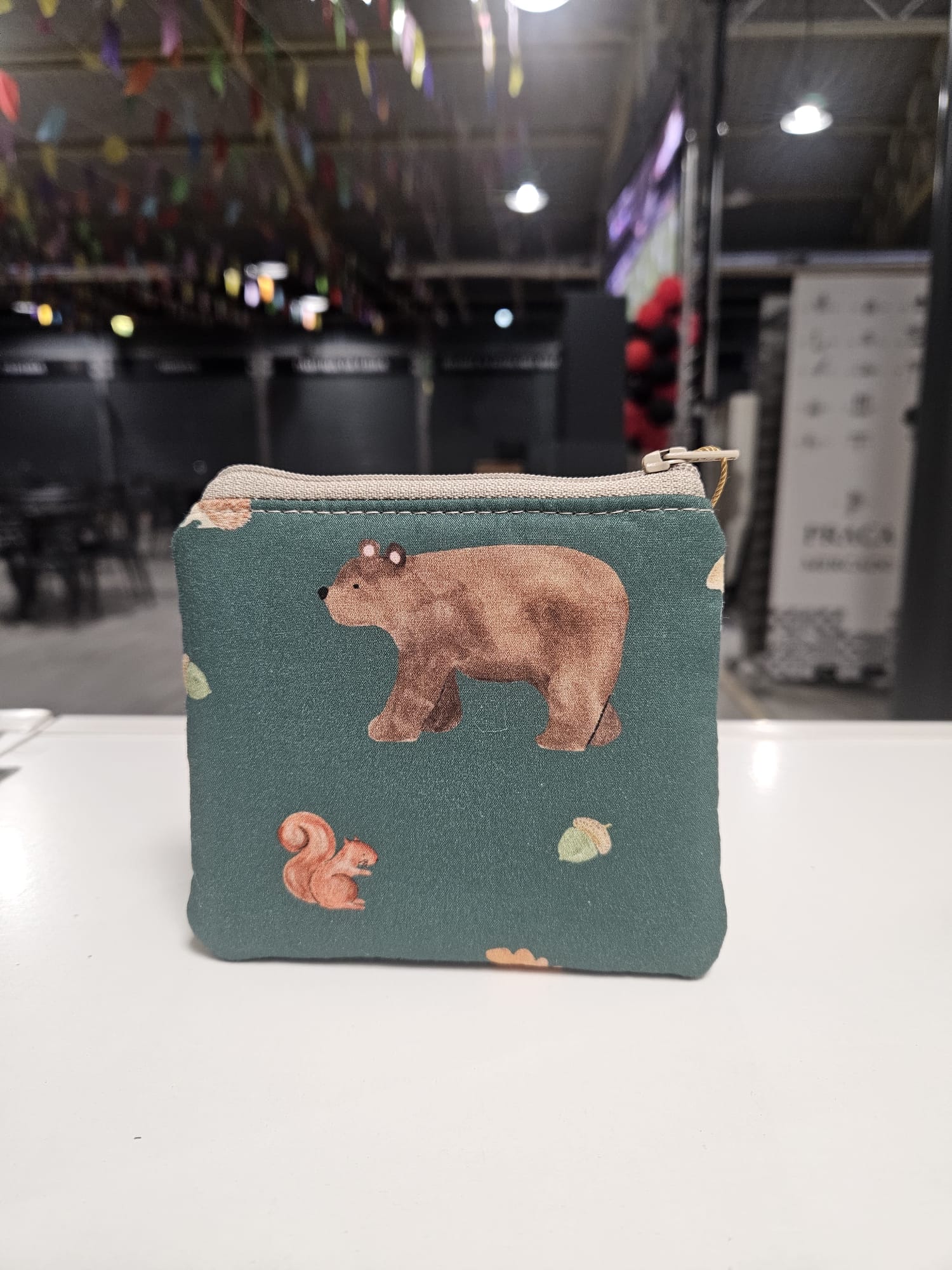 Bolsa tipo necessaire em tecido medidas 12 x 11 cm, interior forrado em tecido