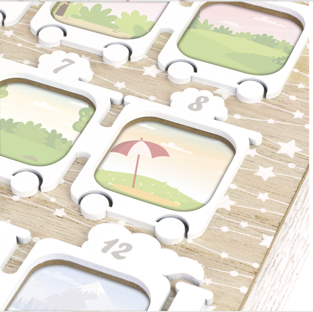 Porta-retratos ZEP para bebês de 12 meses, comporta 12 fotos de 4,5 x 4,5 cm, tamanho total de 25 x 23 cm, moldura de madeira com suporte, ideal para presente.