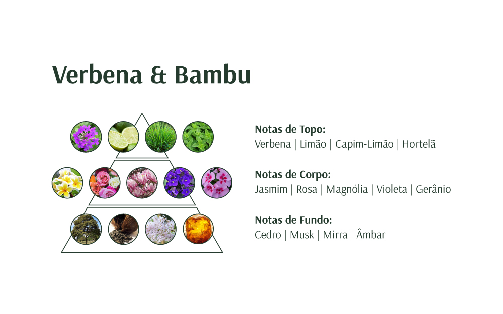 A fragrância Bambu é refrescante e elegante, ideal para criar uma ambiência de tranquilidade e plenitude. Essa fragrância floral fresca transforma qualquer espaço em um refúgio sereno e acolhedor com a calma e a elegância da natureza.