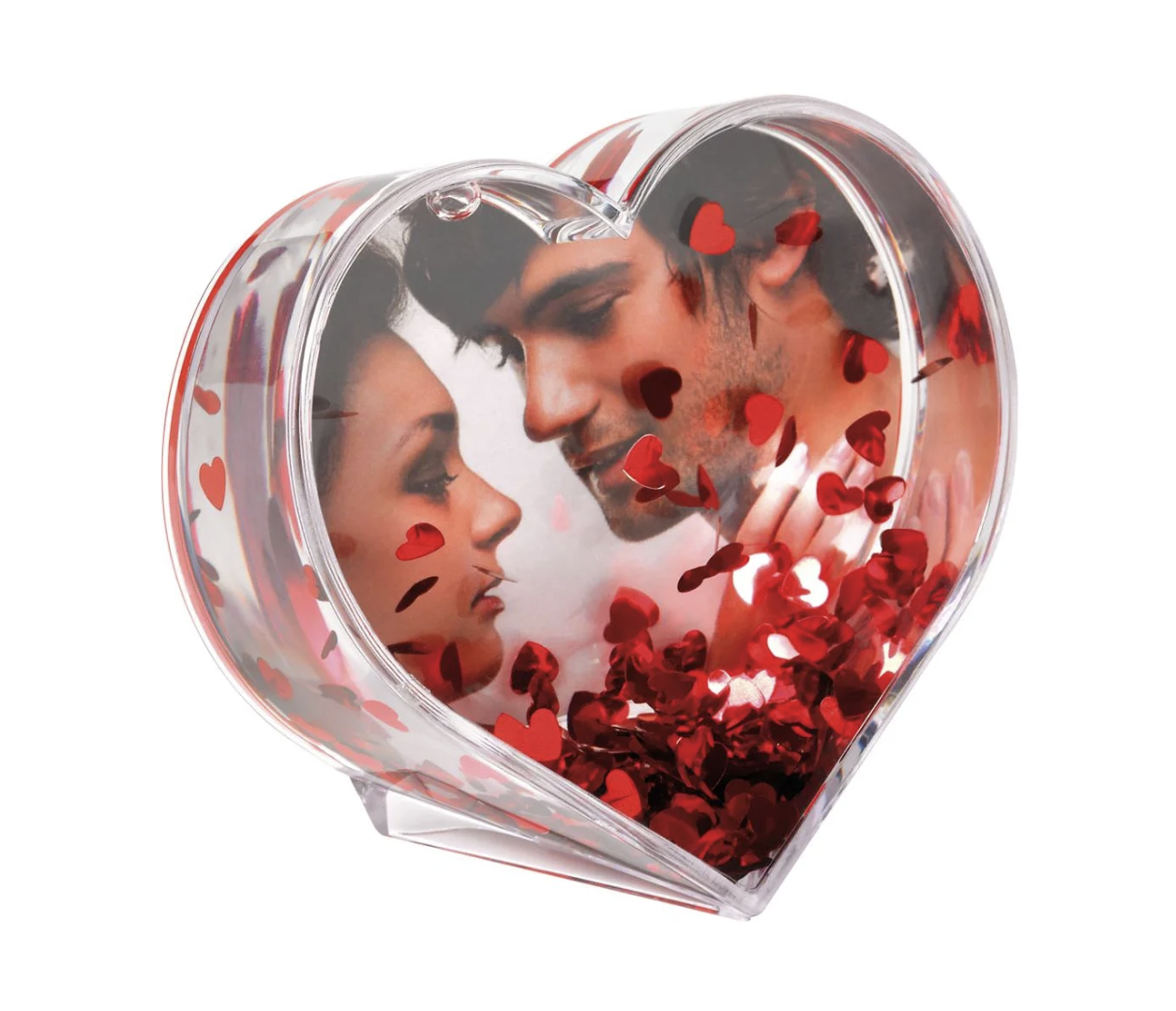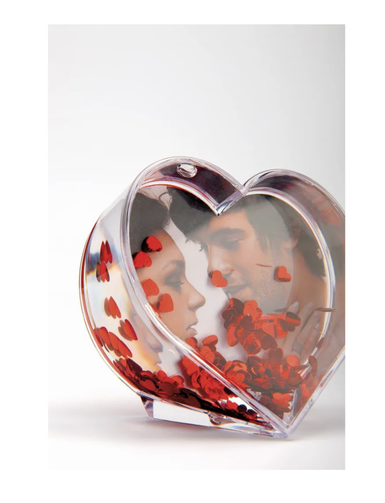 Bola de Glitter para Fotos Walther em Formato de Coração, feita de acrílico com glitter vermelho, ideal para fotos de 6,5 x 9,1 cm (dimensões totais: 4,7 x 9,6 x 9,6 cm), perfeita para presentear.
